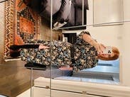 This was fun and a little ridiculous. High quality fabric and print is fun. Slit is quite high. Favorite details was the neon orange piping on the collar and slit. Wore with and without a belt and liked both