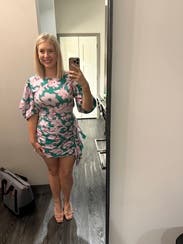Perfect dress for a family bridal shower! A little short. So, watch out getting into that Uber, but otherwise great fit and color!