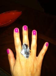 I was wearing a more simple black dress for NYE and wanted some statement jewelry for it, so rented this ring. It was a bit large on me, but I have extremely small fingers, so that is generally the case. It is very pretty and sparkly and definitely makes a statement!