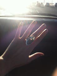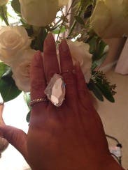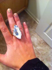 Loved this ring. Wore it with the Badgley Mischka Fluorescent Chiffon Gown to my boyfriend's sister's wedding. The ring did have two small chips in it, but barely noticeable.