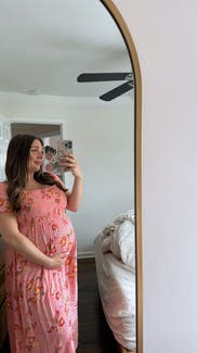 I wore this the week I gave birth and immediately after! It was very cute and perfect for warm temps. It’s not my normal style but I was very happy with it.