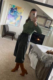 I didn't want to match this outfit with the black turtle neck I wanted it to have more of a pop! My whole office loved the look! The shirt was so soft and super comfortable!