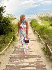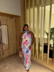 This dress made me feel like a style icon. I loved the neck scarf part and the colors were perfect. Wore this for a date night in Aruba and got the most compliments. It’s also bump friendly! Sized up one size to fit the bump