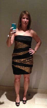 I wore this dress for New Year's Eve in AC. It was the perfect look for dinner & dancing. It was confortable and fit well - I didn't have to keep pulling it up like you sometimes do with strapless dresses. My only complaint was that the little hanger straps kept popping out in the front. Otherwise, it was a great dress that was just the right amount of sparkle.