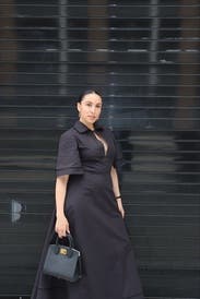 I absolutely loved this dress and wore to an industry event with other design professionals. It is perfectly balanced and edited - the slit at the neck for a hint of cleavage kept the long full skirt from making the dress feel matronly. I received so many compliments. This could easily swallow a petite person - highly recommend for the tall ladies