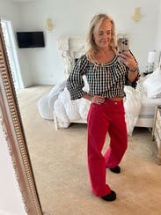 I love these jeans! Such a fun and easy way to add a vibrant pop of color to any outfit - it instantly elevates whatever I'm wearing. The shade of red is gorgeous and the perfect color for fall or dressing for the holiday season. As a taller person, finding items with the right proportions can be tricky, but the length is great! Highly recommend if you're looking for color and a great fit!
