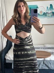 This dress is just perfect. I love wearing it when I go out to dinner on vacation. I’ve rented once and then decided to purchase I loved it so much.