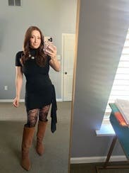 This picture only shows the length on a 5’4” person! This dress is VERY fitted and short. Takes a bit of confidence to make it work. And work it, I did! I wore this outfit when I was orchestrating a dinner party for friends. It was fun and the dress was very comfortable and easy to wear.