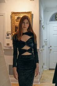 There were 0 reviews on this dress but I took the risk and wow!!! Such a standout dress, perfect for holiday season. Such a fun take on a classic black velvet dress, the cutouts showed the perfect amount but didn’t feel too revealing with the longer length and sleeves. So many compliments! Would rent again!