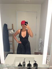I wrote this out and felt like a million dollars. I love the deep plunge and really came around to the voluminous skirt. At first, I felt a little silly but then decided to be extra and go with it. It’s sexy and sweet at the same time. Yes, the bodysuit is a bit short but it stretches for us tall gals. Highly recommend!