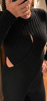 I liked the middle cutout, but the side cutouts were not flattering on me. Ended up wearing out anyway with some leggings and other people seemed to like it, but not my favorite item. At least the sweater was soft and warm.