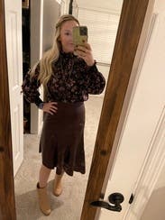 I really liked this skirt, it looked expensive and was easy to style. It was a tad on the larger side around the waist and I wish it was a couple inches shorter to fit my 5’4 height better
