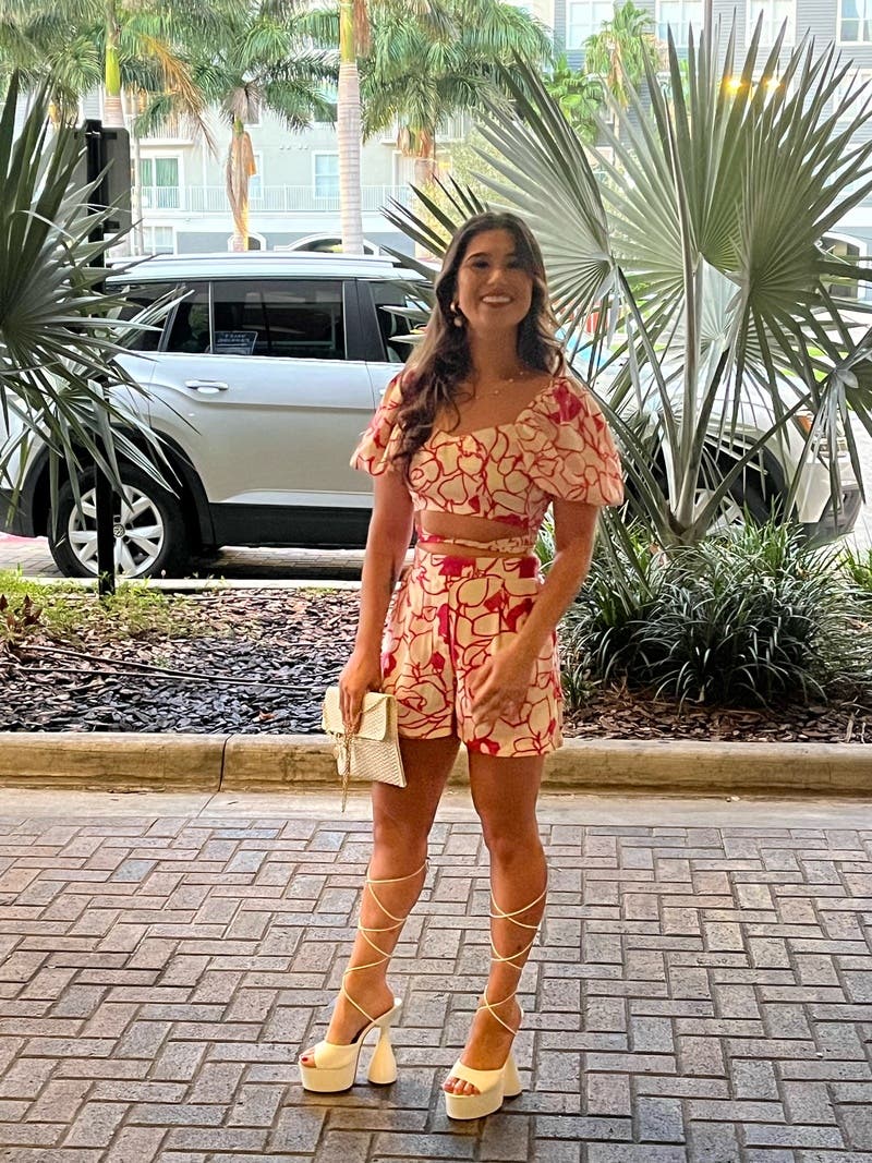 Style these floral shorts by Ronny Kobo Collective with a button-down linen shirt for an effortlessly beachy look.