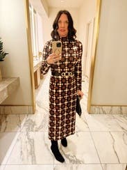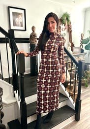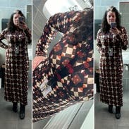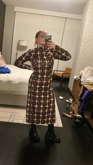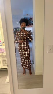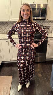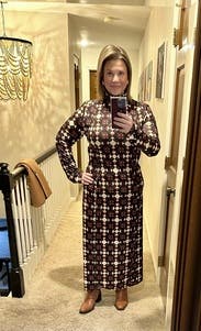 Very comfortable and flattering dress! Pretty pattern and fall vibe! Wore to a bridal shower and out to dinner. Can be dressed up or down!