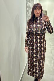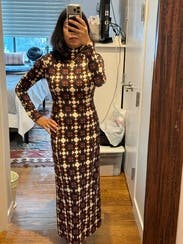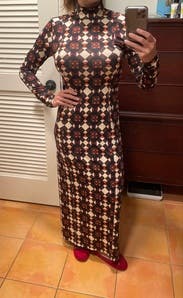 I went to a gallery opening with this one, and I got so many compliments. It was really the dress of the evening. True to size. I love the zipper in the back of the neck so you don’t have to mess up your make up when putting on the dress. Will definitely rent again one day.
