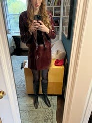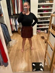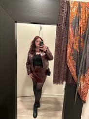 Def got compliments on the full set - rented it for a Halloween pop up bar for a full “vampire off-duty” vibe. It’s pleather so it’s a little hot and I sized up like I usually do with mini skirts to make sure everything is fully covered - which it was while still being a little sexy. Docked a star because I do wish RTR would offer more leather than just continuous plastic, especially on their collab lines, and this pleather definitely seemed on the cheaper side. But a cute skirt for sure!