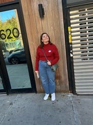 I wore the heck out of this the month I had it. I wore it to Thanksgiving dinner, a movie date, and my company's very casual holiday party. I found it to be quite itchy so I wore a silk cami underneath but the neck still drove me a little crazy. And yep you'll need high waisted jeans for this one. But the deep burnt sienna red is very flattering and festive and is still a great rental.