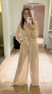 So cute for a swim suit coverup. The pants are sheer but lined with shorts. Loved how flowy they were for the beach.