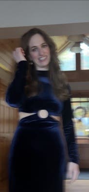 There were no reviews before I rented so I was nervous but it worked out! I was freezing in this photo but a fun dress for winter. Beautiful blue velvet and fun but tasteful cutouts