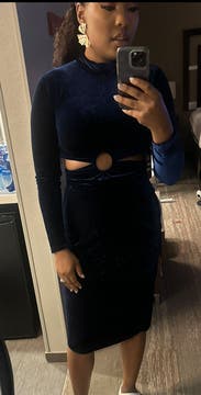 Wore to a December wedding, loved everything about it including the cut outs. Tons of compliments and the blue is really a deep beautiful shade