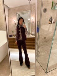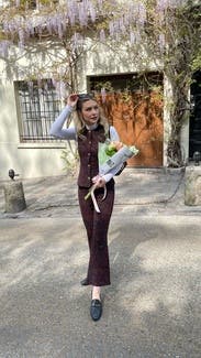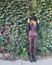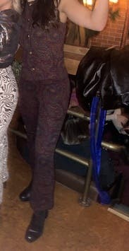 I wore these with the matching vest on three separate occasions and got compliments every time. The pants are definitely true to size so I could've sized down. They're also cropped flares which made my legs look a bit shorter since I have wider hips, but I felt confident anyways. Style with black boots.