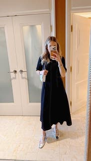 Mature, demure, and classy af. Understated yet a statement dress at the same time. The MBD (midi black dress) you absolutely need - and yes there are pockets. Such high quality design, fabric, and detailing. Should have bought this pretty lady!