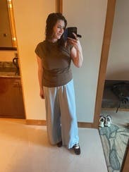 Wore this set to a work conference and as separates through out the week. Very flowy and never overheated. Definitely size down! I wore a 4 in the pants (usually a 8/10) but could have gone for a 6.