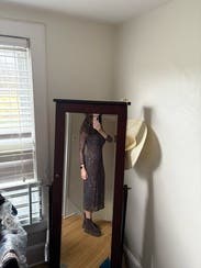 I wore this dress so many times and was honestly reluctant to send it back. It was stylish, so comfortable, and while the fabric was firm-fitting it did not cling in an unflattering way. Absolutely loved this and would rent again!