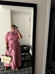 Loved this dress and its shape. It has pockets too! A bit long for me (I’m 5’4”) and the buttons weren’t the easiest. But I would rent again!