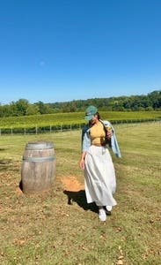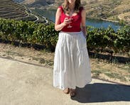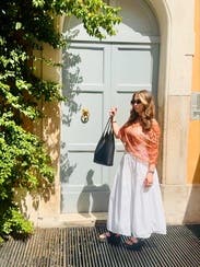 I loved this skirt, it's so comfortable, HAS POCKETS, and is perfect to dress up, or dress down with sneakers and a hat like i did. I wore to work once with wedges and a cardigan and pictured at a winery!