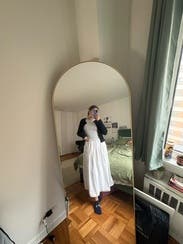 This skirt is a staple in my closet now and I love it so much. The waist is adjustable so I can keep her forever