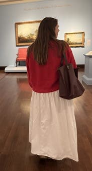 This skirt has an elastic waist and pockets. It has a slip, so you don’t have to worry about exposure and it goes with everything. What’s not to love? Rent it!