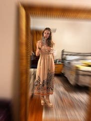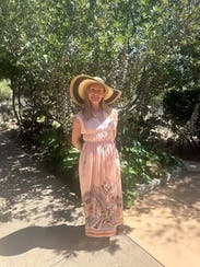 The material is gorgeous and the pattern to match. The fit is very unique and actually slightly minimized my bust which for a DD is a great thing. It made me feel the magic of the property we visited - wore this on vacation with my family at a wine estate - great for brunch or anywhere elevated outdoors.