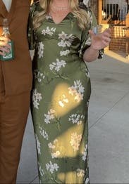 Perfect dress for a wedding! Super comfortable and love the print and material