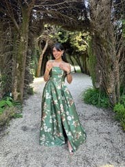 Grace Kelly called and she wants her dress back. Feel like royalty at your next event when you wear this stunning green floral satin ball gown by Sachin & Babi.