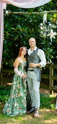 I wore it to my wedding and almost everyone there commented that I was the "most beautiful bride - ever"! See the picture. The material is even more exquisite than it appears. The waist is very tight which keeps the dress from falling down and having a boob flash.