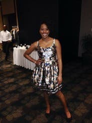 This dress was absolutely amazing!! The colors were even brighter in person and it had a metallic sheen to it. I had no trouble with the zipper at all. The pleating of the dress made it big and poofy at the bottom and it even had pockets! I paired the dress with a metallic gold choker style necklace, black lace up heels and a leather jacket it to make it edgier. This is my third RTR rental and they have not failed me yet!