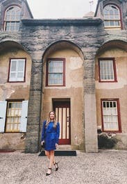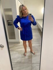This bold blue stood out at a conservative dinner where most people wore black. Fabric is light and silky and dress fit well. Would rent again.