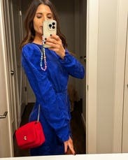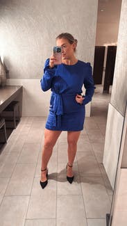 Wore to a wedding. Perfect fit and can’t beat this blue color!