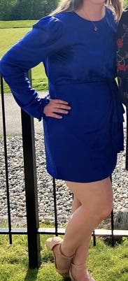 It was such a cute dress, perfect with tights for a semi casual winter wedding. I think I could have ordered a 2, because it was slightly too big. But I just pulled the sleeves up to quarter length and got so many compliments. Was very comfortable. Such a pretty rich blue color.