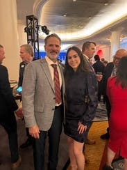 This was just right for a political fundraiser, modest but fun with semi sheer sleeves. Not too short!