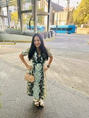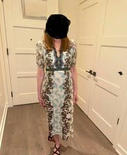 This dress is cute, but it didn’t wow me as much as it did in the photos. Agree with others that the cutout is a little awkward—I wore a cami. I wouldn’t rent it again, but it was fine to wear to dinner once,