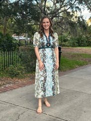 I wore it to a wedding in Florida in August and at a photo shoot for in July. Both were extremely hot days, and I felt very comfortable. I will say that the little peekaboo at the chest is a little annoying because you can see your bra, and it kind of gaps if you have a larger chest, but it wasn’t a dealbreaker, and I got lots of compliments. I was quite comfortable in it.