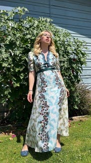 I wore this today for church on Mother’s Day. I’m not religious, but it was conservative enough to be appropriate, but had the little peek-a-boo chest area so I got to feel like a little bit of a rebel. I’m small chested so it wasn’t actually risqué. I plan on wearing this again for work with a lace bralette underneath. The quality of the fabric was obvious and felt so luxurious. The pattern and style is beautiful. Be aware that the band under the chest has no give so size based on your ribcage.