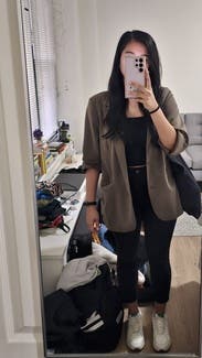 It's a great spring/ fall weight blazer that's just the right bit of oversized. Super easy to style and a great color-l