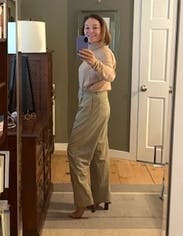 Originally rented for work and they were professional, comfy and great. But realized I loved them for everyday too- wore with flats and a tee, also dressed up with a sexier bodysuit and heels. Truly great pant. Pics don’t do them justice but fit well and feel strangely cool
