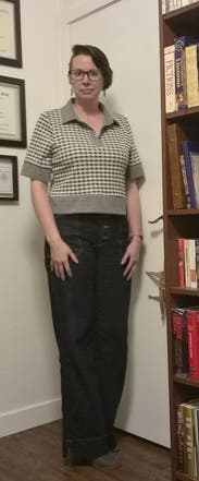 I liked these jeans and wore them a few times. The waist runs a bit small so they fit better after my first wear. The jeans material does not have any elastase so they don’t stretch like most jeans today. However this does give them a dressier more structured vibe. You will want a shorter top to wear with them so you can see the unique front pockets and stitching.