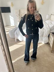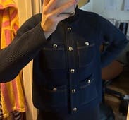 This cardigan was so cute. Elevated my jeans. It definitely is warm. Nice heavy weight. It’s like a blazer. I found the sleeves to be a hair long but I don’t have the longest arms. The gold buttons were great. They are snaps! I thought that was a great touch.