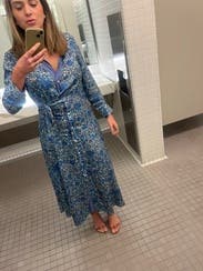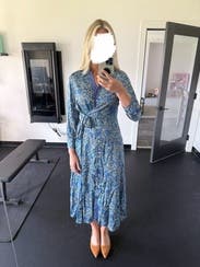 Another elegant and feminine dress. The fabric is silky and the colors are beautiful. The tie sits just above my natural waist which hides the midsection. Looks very rich/ gives me old money vibes. Came with original tags still attached, as a bonus 😄