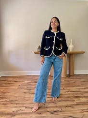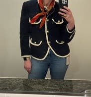 I loved this blazer! It is classy and sophisticated, but does run big. Would recommend sizing down. It is a wool jacket, so definitely more of a fall/winter jacket than spring in Florida. The rounded corners on the front gave it a more unique look that paired well with high waisted slacks when buttoned all the way up.